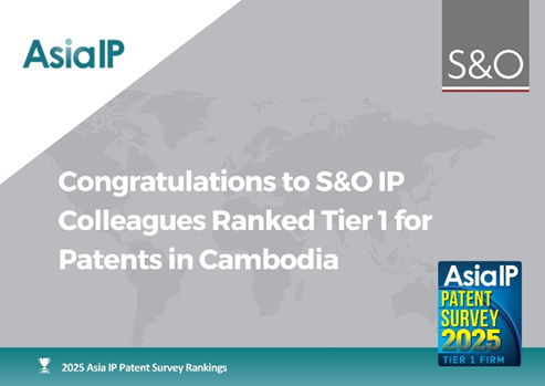 We are pleased to announce that S&O IP has been ranked as a Tier 1 firm for Patents in Cambodia in the 2025 Asia IP Patent Survey Rankings.