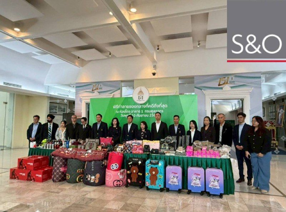 On September 10, 2025, S&O IP participated in the Destruction Ceremony organized by the Thai Customs Department. Approximately 700,000 counterfeit items, with an estimated total value of 60 million THB (approx. EUR 1.5 million), were destroyed. The goods had been seized by the Police, Customs Department, and the Department of Special Investigation (DSI) under the Customs Act and other applicable laws.