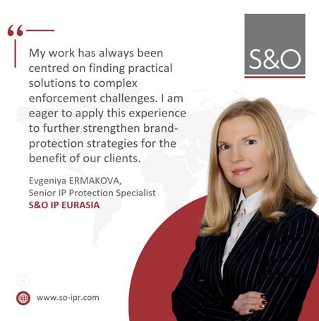 We are pleased to welcome Evgeniya ERMAKOVA to the S&O IP Eurasia team as a Senior IP Protection Specialist.